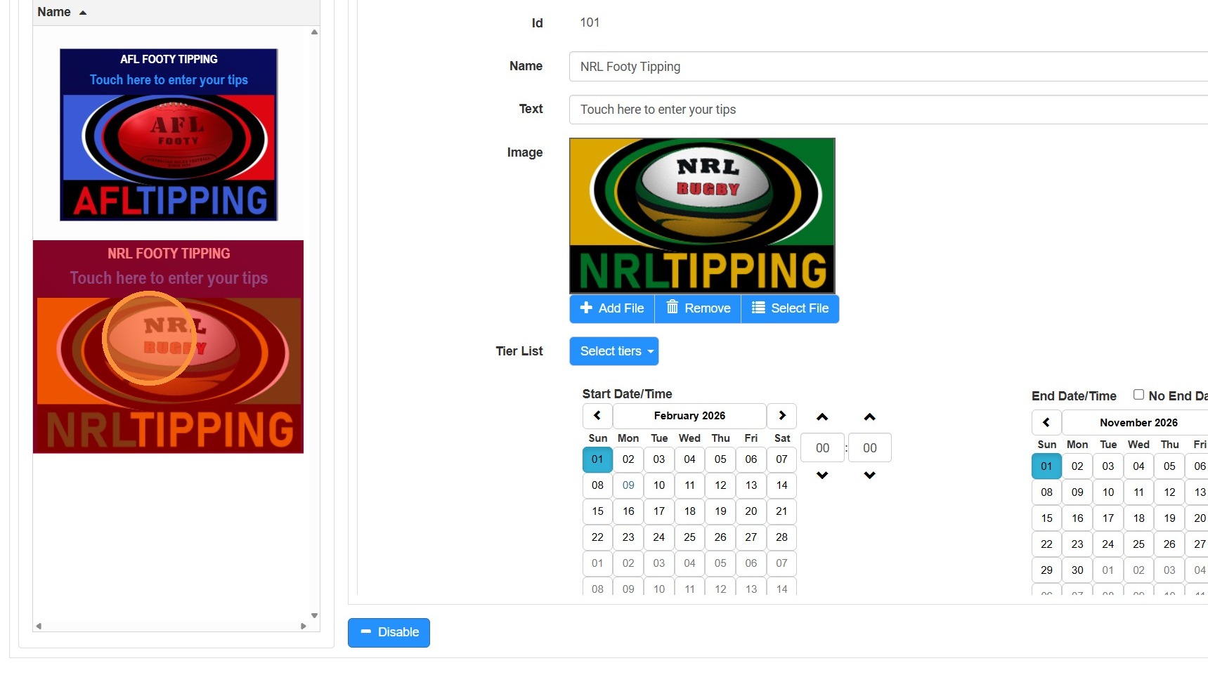 4. Your Footy Tipping competition is now live and ready for your members to lodge their tips