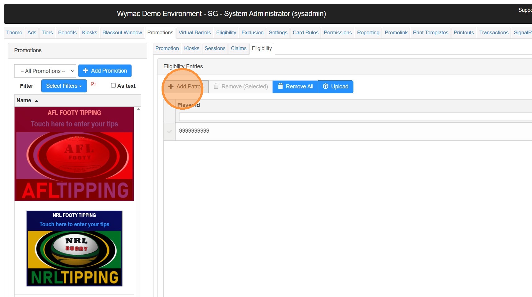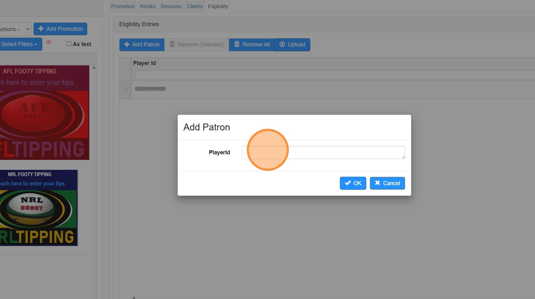 A new promotion has been created for your preferred tipping competition. It is configured, however for testing, you need to add the membership number for your test card.