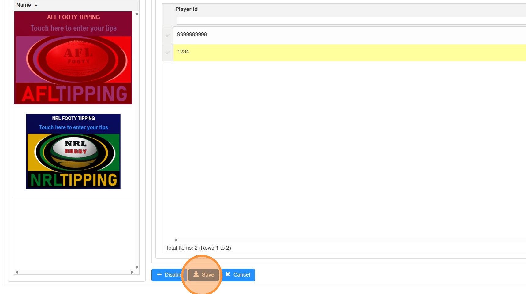 9. Your Footy Tipping competition will now be available to your test card.