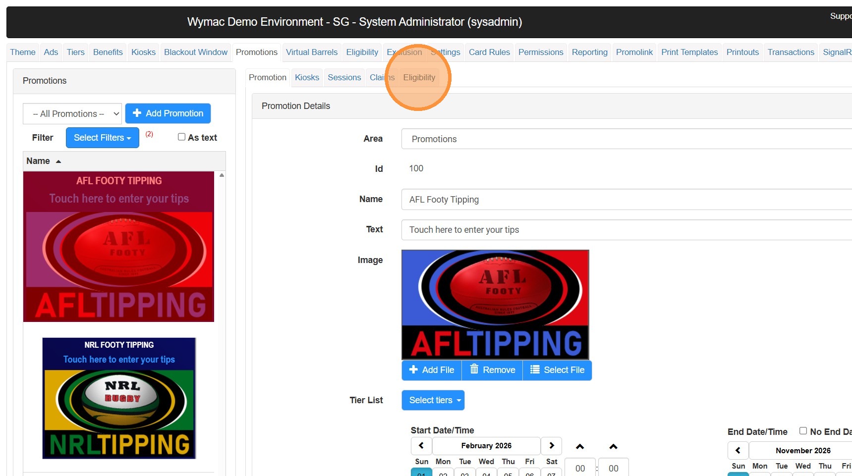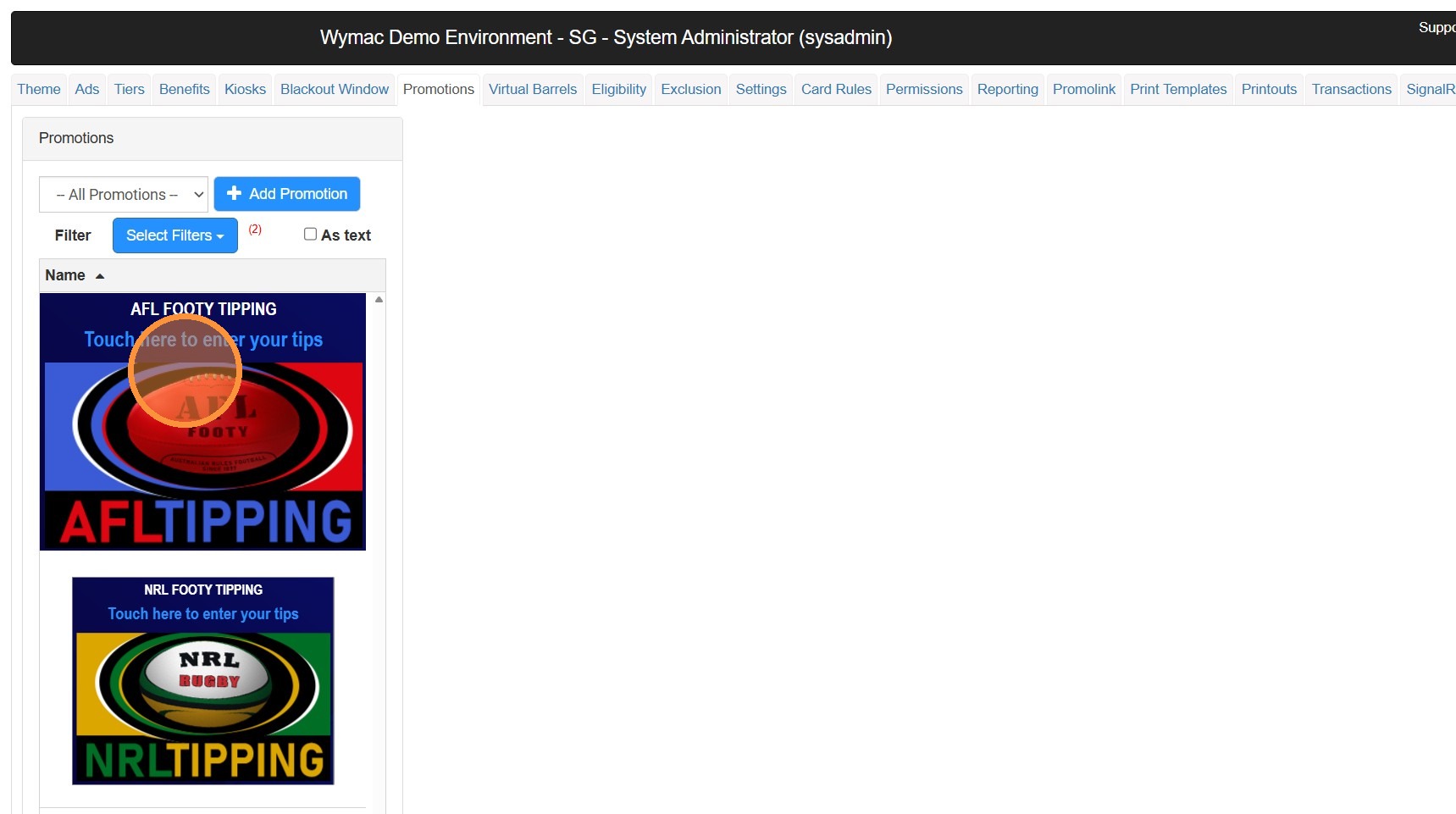 1. Navigate to the promotion tab in your Wymac Kiosk Software.